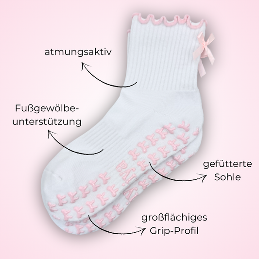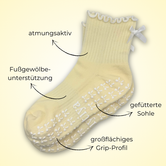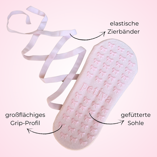 petiya Socken sind mehr als nur schön: Sie sind atmungsaktiv, bequem und bieten dir durch das großflächige Grip-Profil sicheren Halt.